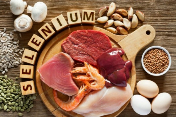 Kekurangan selenium akan berdampak pada gangguan sistem endokrin, penyakit jantung, serta imun tubuh. Selenium dapat ditemui di dalam biji-bijian, sayuran hijau, jamur kancing, dan jamur shitake. Makanan-makanan tersebut merupakan sumber organik selenium yang sangat baik. Selenium juga ditemui di dalam daging sapi, roti, ayam, gandum, dan keju.