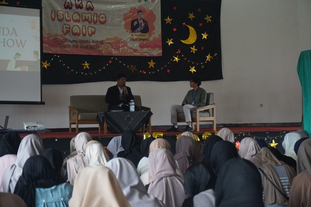 Deril, selaku Ketua Pelaksana, juga menyampaikan harapannya agar tema AKA Islamic Fair tahun ini, yaitu “Membangun Muslim Sejati Menuju Generasi Emas,” dapat teraplikasikan dan tercapai dalam diri setiap peserta.
